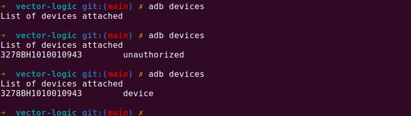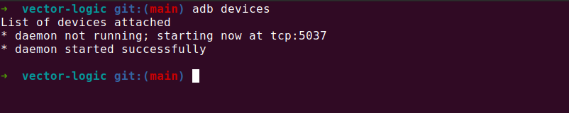 Starting the ADB server on development machine (Ubuntu 20.04).